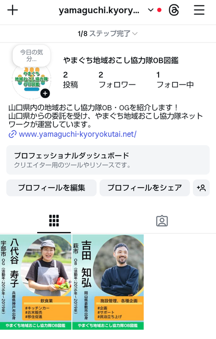 お知らせ · 2025/12/10 Instagram「やまぐち地域おこし協力隊OB図鑑」を開設しました! 【やまぐち地域おこし協力隊OB図鑑】 は、 山口県の地域おこし協力隊OB・OGでこんな人いないかな?が見つかる、図鑑のような役割にしていきたいと思っています。 現役隊員同士、OB・OG同士とのつながり作りや、仕事を依頼したい人(一般)とのつながり作りに活用してていただきたいです。 やまぐち地域おこし協力隊ネットワーク理事より、掲載登録フォームの記入のお願いをさせていただきます。 OB・OGの皆様は、ぜひご協力をお願いいたします。 Instagram【やまぐち地域おこし協力隊OB図鑑】 tagPlaceholderカテゴリ: